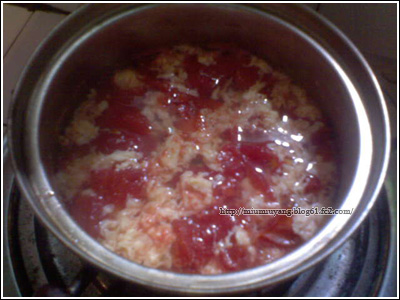 图二:因为上周母上大人来后买的菜,剩了两个番茄两个鸡蛋。于是今天中午我弄了个汤,第一次弄发现我忘了煮前洗番茄(囧),还忘了煮的时候放香油,是说好了后的味和父上弄的不太一样。